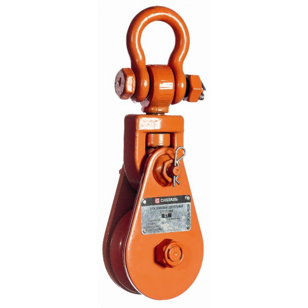 Блок шкивовый однорольный с проушиной 1 т, D каната 7 — 9 мм LS, СибТаль — это блок с шкивом, который используется в различных подъемных и тяговых системах для изменения направления движения каната и равномерного распределения нагрузки.